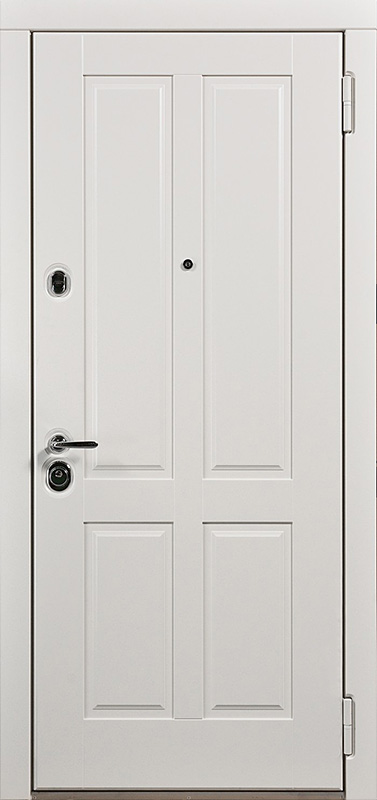 Белая входная дверь с зеркалом для коттеджа №13 идеально сочетает в себе элегантность и функциональность. Панели МДФ ПВХ придают ей стильный внешний вид, а также обеспечивают долговечность и устойчивость к механическим повреждениям. Зеркальная вставка не только визуально расширяет пространство, но и добавляет особого шарма. Конструкция из профильной трубы 50х25 мм и листа металла толщиной 2 мм делает дверь прочной и надежной, а ребра жесткости из профильных труб 40х25 мм добавляют дополнительную стабильность. Встроенные замки "Просам" и "Мосрентген" с тремя ригелями обеспечат высокий уровень безопасности. Резиновый уплотнитель с двумя контурами защищает от холода и шума, обеспечивая комфорт в вашем доме. Возможность комбинирования отделки с добавлением стеклопакета, кованых элементов или зеркала позволяет адаптировать дверь под любые пожелания. Белая входная дверь с зеркалом для коттеджа №13 от производителя: быстрое изготовление и монтаж в Обнинске, индивидуальные размеры, широкий выбор материалов и фурнитуры, официальная гарантия до 10 лет.