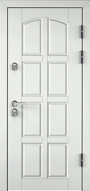 Эта классическая белая входная дверь с прямоугольниками №29 привнесет элегантность и надежность в ваш дом. Ее конструкция состоит из профильных труб 50х25 мм и листа металла толщиной 2 мм, что гарантирует высокую прочность. Внешняя и внутренняя отделка из МДФ придает двери стильный вид, а устойчивость к повреждениям позволяет сохранить первоначальный облик на долгие годы. Благодаря двухконтурному резиновому уплотнителю, дверь эффективно защищает от холода и шума. Замки Просам и Мосрентген с тремя ригелями обеспечивают надежную защиту от несанкционированного доступа. Кроме того, в эту модель можно добавить стеклопакет, зеркало или кованые элементы, адаптируя дверь под любые дизайнерские решения. Классическая белая входная дверь в частный дом с прямоугольниками №29 от производителя: быстрое изготовление и монтаж в Обнинске, индивидуальные размеры, широкий выбор материалов и фурнитуры, официальная гарантия до 10 лет.