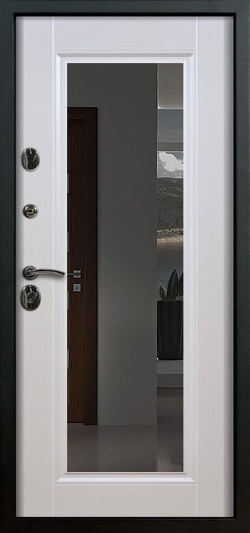 Металлическая входная дверь с зеркалом внутри №1 создана как универсальное решение для дома, квартиры или офиса, где важны и безопасность, и комфорт. Каркас выполнен из прочной профильной трубы с металлическим листом толщиной 2 мм и рёбрами жёсткости, что обеспечивает устойчивость к механическим воздействиям и долгий срок службы. Снаружи дверь покрыта порошковой окраской, стойкой к атмосферным влияниям и царапинам, а изнутри отделана МДФ с ПВХ-покрытием, которое сохраняет свежий вид даже при интенсивной эксплуатации. Встроенное зеркало превращает полотно в практичный элемент интерьера: оно визуально расширяет пространство прихожей и избавляет от лишних предметов мебели. Два контура уплотнителей защищают от пыли и сквозняков, а блокираторы усиливают общую надёжность конструкции. Модель не оснащена терморазрывом, зато отличается продуманным балансом практичности и доступной цены, оставаясь удобным вариантом для повседневного использования. Металлическая входная дверь с зеркалом внутри №1 от производителя: быстрое изготовление и монтаж в Обнинске, индивидуальные размеры, широкий выбор материалов и фурнитуры, официальная гарантия до 10 лет.