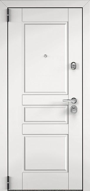 Белая металлическая дверь входная для дома №33 выделяется своим свежим и современным обликом. Универсальный белый цвет делает её уместной как в частном коттедже, так и в квартире или офисе, визуально добавляя простора и подчеркивая аккуратность фасада или интерьера. Конструкция двери основана на стальном листе толщиной 2 мм и усилена профильными трубами, что гарантирует надежность и устойчивость к нагрузкам. Важная особенность модели — наличие терморазрыва в полотне и коробке: благодаря этому дверь не промерзает в зимний период, исключается конденсат и сохраняется комфорт внутри помещения. Внешняя и внутренняя отделка выполнена из МДФ с ПВХ-покрытием, которое защищает поверхность от влаги и механических повреждений, сохраняя первозданный вид надолго. Два контура уплотнителя обеспечивают герметичность и дополнительную защиту от сквозняков. Эта дверь удачно сочетает эстетику и практичность, создавая надежный вход в любое жилище. Белая металлическая дверь входная для дома №33 от производителя: быстрое изготовление и монтаж в Обнинске, индивидуальные размеры, широкий выбор материалов и фурнитуры, официальная гарантия до 10 лет.