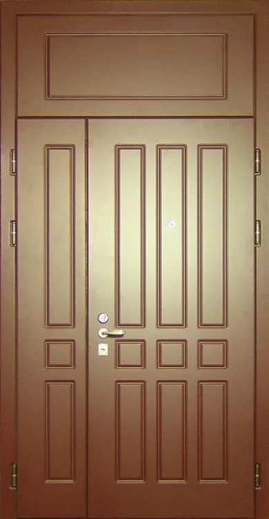 Полуторная входная дверь с верхней фрамугой №2 — это оптимальное решение для тех, кто ищет функциональность и эстетичность в одном продукте. Она отличается стильной отделкой из МДФ, которая устойчива к механическим повреждениям и сохраняет свой внешний вид на долгие годы. Конструкция двери включает прочный каркас из профильной трубы 50х25 мм и металл толщиной 2 мм, что обеспечивает высокую надежность. Наличие верхней фрамуги придает двери визуальную легкость и позволяет пропускать больше света, создавая уют в прихожей. Замки от надежных производителей, таких как Просам и Мосрентген, с тремя ригелями гарантируют высокий уровень безопасности. Для дополнительной кастомизации можно добавить стеклопакет, зеркало или кованые элементы, а также установить видеодомофон для контроля доступа. Полуторная входная дверь с верхней фрамугой №2 от производителя: быстрое изготовление и монтаж в Обнинске, индивидуальные размеры, широкий выбор материалов и фурнитуры, официальная гарантия до 10 лет.