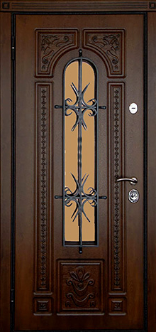 Металлическая дверь со стеклом и кованой решеткой №13 — это решение для тех, кто хочет совместить надежность и декоративную выразительность. Прочная конструкция из профильной трубы и стального листа толщиной 2 мм гарантирует устойчивость к нагрузкам, а ковка со стеклянными вставками делает вход более светлым и при этом надежно защищенным. Плита МДФ, используемая в отделке с обеих сторон, отличается долговечностью, стойкостью к царапинам и перепадам температуры, сохраняя аккуратный внешний вид на долгие годы. Два контура уплотнения и резиновая прокладка защищают от сквозняков и влаги, повышая комфорт в доме. Возможность выбора размеров и вариантов отделки позволяет создать дверь, полностью соответствующую архитектуре коттеджа или загородного дома. Металлическая дверь со стеклом и кованой решеткой №13 сочетает функциональность, эстетичность и индивидуальный характер, подчеркивая престиж жилища. Металлическая дверь со стеклом и кованой решеткой №13 от производителя: быстрое изготовление и монтаж в Обнинске, индивидуальные размеры, широкий выбор материалов и фурнитуры, официальная гарантия до 10 лет.