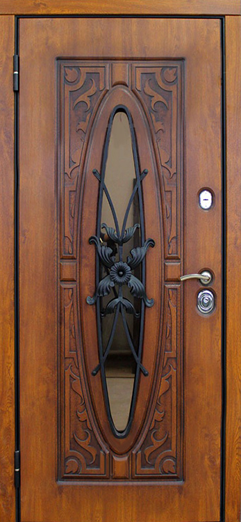 В частном доме дверь должна быть не просто барьером, а настоящей визитной карточкой, и именно эту задачу решает входная дверь со стеклом и ковкой №23. Натуральное дерево в отделке придает ей благородный и теплый вид, а декоративная ковка превращает конструкцию в выразительный элемент архитектуры. Внутри скрыт стальной каркас с листом металла 1,5 мм и противосъёмными блокираторами, что обеспечивает прочность и устойчивость к взлому. Особого внимания заслуживает наличие терморазрыва как в коробке, так и в полотне: он защищает от промерзания, исключает появление конденсата и помогает сохранять тепло зимой и прохладу летом. Тройной контур магнитного уплотнения усиливает герметичность и снижает уровень уличного шума, а пенопласт повышенной плотности в качестве наполнителя добавляет теплоизоляции. Входная дверь в частный дом со стеклом и ковкой №23 гармонично сочетает надежность и эстетику, позволяя владельцу адаптировать её под стиль фасада с помощью дополнительных декоративных решений. Входная дверь в частный дом со стеклом и ковкой №23 от производителя: быстрое изготовление и монтаж в Обнинске, индивидуальные размеры, широкий выбор материалов и фурнитуры, официальная гарантия до 10 лет.