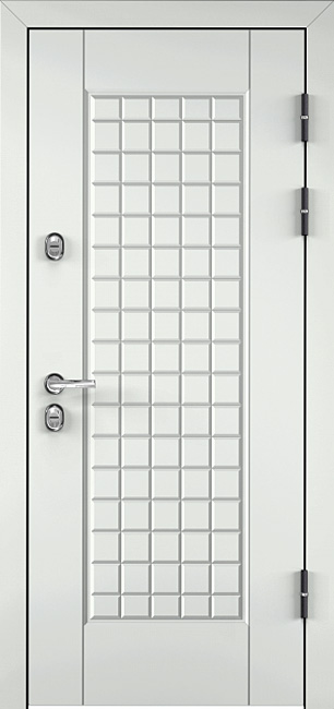 Белый цвет всегда символизирует чистоту и лёгкость, а на входной двери он ещё и подчёркивает современный вкус владельца. МДФ-плита с аккуратным вырезом «плитка» создаёт интересный декоративный эффект, благодаря которому строгая поверхность получает стильный рельеф и выглядит солидно как в частном доме, так и в офисном пространстве или городской квартире. Белая входная дверь МДФ с вырезом "плитка" в центре №532 изготовлена на основе прочного каркаса из профильной трубы с усиленными рёбрами жёсткости и металлическим листом толщиной 2 мм. Конструкция оснащена двумя замками российского производства — сувальдным Просам и цилиндровым Мосрентген, что обеспечивает надёжную защиту. При желании её можно дополнить зеркалом, коваными элементами, стеклопакетом или даже умными биометрическими замками. Такая дверь не только надёжна, но и способна стать выразительной деталью экстерьера или интерьера. Белая входная дверь МДФ с вырезом "плитка" в центре №532 от производителя: быстрое изготовление и монтаж в Обнинске, индивидуальные размеры, широкий выбор материалов и фурнитуры, официальная гарантия до 10 лет.