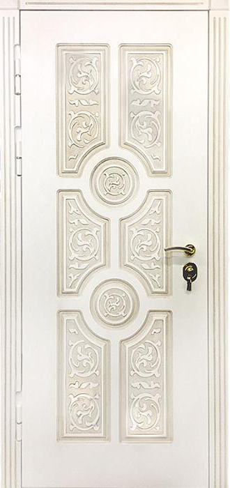 Дверь уличная с терморазрывом №49 — это надежное решение для частных домов и коттеджей, которое обеспечит комфорт и защиту от внешних факторов. С терморазрывом в коробке и полотне, эта дверь исключает проникновение холода, сохраняя тепло в доме и предотвращая появление конденсата. Внешняя и внутренняя отделка выполнена с использованием накладки МДФ, что придает двери привлекательный вид и долговечность, стойкость к механическим повреждениям и атмосферным воздействиям. Ковка, как элемент декора, добавляет изысканности и подчеркивает индивидуальность. Металлическая конструкция с толщиной полотна 1,5 мм и каркасом из профильных труб гарантирует прочность и устойчивость. Уплотнение с тремя контурами магнитного герметика и высокая шумо- и теплоизоляция на основе пенопласта делают дверь идеальной для использования в уличных условиях. Возможность замены замков и добавления стеклопакетов или кованых элементов позволяет индивидуализировать дверное решение под любые потребности. Дверь уличная с терморазрывом №49 от производителя: быстрое изготовление и монтаж в Обнинске, индивидуальные размеры, широкий выбор материалов и фурнитуры, официальная гарантия до 10 лет.