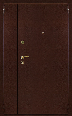 Двухстворчатая металлическая тамбурная дверь эконом №1 сочетает в себе простоту и надежность, что делает её отличным выбором для установки в местах с высокой проходимостью. Внешняя порошковая окраска обеспечивает стойкость к механическим повреждениям, а внутренняя отделка из ламинированных панелей придает двери элегантный вид, сохраняя при этом долговечность и устойчивость к внешним воздействиям. Каркас и полотно выполнены из профильной трубы 50х25 мм, что гарантирует прочность конструкции. Толщина металла 2 мм и наличие ребер жесткости добавляют дополнительную жесткость и защиту. Дверь оснащена замками "Просам" и "Мосрентген", каждый из которых имеет по три ригеля для надежного запирания. Резиновое уплотнение с двумя контурами надежно защищает от попадания влаги и пыли. Возможность комбинировать отделки и добавить зеркало, стеклопакет или кованые элементы позволяет сделать дверь не только функциональной, но и стильной. Тамбурная металлическая двухстворчатая дверь эконом №1 от производителя: быстрое изготовление и монтаж в Обнинске, индивидуальные размеры, широкий выбор материалов и фурнитуры, официальная гарантия до 10 лет.