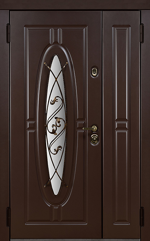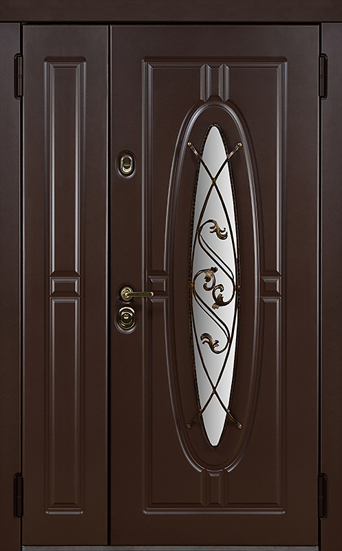Двойная уличная дверь с овальным стеклом и художественной ковкой №14 — это уникальное сочетание функциональности и эстетики. Панели МДФ с ПВХ-покрытием, используемые как для внешней, так и для внутренней отделки, обладают высокой стойкостью к внешним воздействиям, сохраняя свой внешний вид на долгие годы. Внешний декор в виде художественной ковки придаёт двери особый шарм, подчеркивая её стиль и индивидуальность. Двойная уличная дверь с овальным стеклом и художественной ковкой №14 от производителя: быстрое изготовление и монтаж в Обнинске, индивидуальные размеры, широкий выбор материалов и фурнитуры, официальная гарантия до 10 лет.