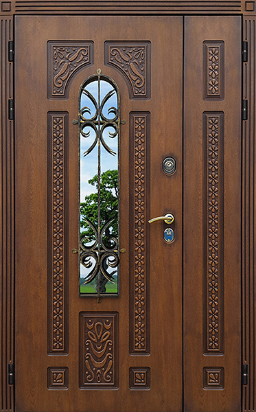 Двойная входная дверь с большим стеклом и ковкой для дома №25 сочетает в себе стиль и надежность, предлагая великолепное решение для вашего дома. Внешняя и внутренняя отделка выполнены из панелей МДФ с ПВХ, что придает двери долговечность и устойчивость к механическим повреждениям, а также способствует легкости ухода. Стеклопакет в комбинации с изысканным кованым узором создаёт не только эстетическое наслаждение, но и позволяет улучшить светопроникновение в помещении. Двойная входная дверь с большим стеклом и ковкой для дома №25 от производителя: быстрое изготовление и монтаж в Обнинске, индивидуальные размеры, широкий выбор материалов и фурнитуры, официальная гарантия до 10 лет.