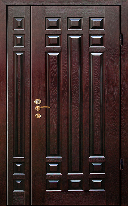 Эта двухстворчатая парадная дверь с объемной фрезеровкой №3 станет отличным акцентом в любом интерьере, добавив элегантности и солидности. Внешняя и внутренняя отделка из натурального дерева придает двери натуральный и стильный вид, который легко впишется как в классические, так и современные дизайны. Прочная конструкция двери с каркасом из профильной трубы 50х25 мм и листом металла толщиной 2 мм гарантирует долговечность и защиту. Ребра жесткости из профильных труб 40х25 мм повышают ее устойчивость к нагрузкам. Замки "Просам" и "Мосрентген" с тремя ригелями обеспечивают надежную защиту. Возможность выбора отделки и установки дополнительных элементов, таких как зеркало, стеклопакет или кованые детали, позволяет сделать дверь уникальной и подходящей под любые требования. Терморазрыв полотна и коробки способствует улучшению теплоизоляции. Вдобавок можно оснастить дверь современными замками и видеодомофоном для дополнительного комфорта и безопасности. Парадная двухстворчатая дверь с объемной фрезеровкой №3 от производителя: быстрое изготовление и монтаж в Обнинске, индивидуальные размеры, широкий выбор материалов и фурнитуры, официальная гарантия до 10 лет.