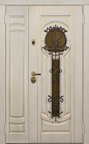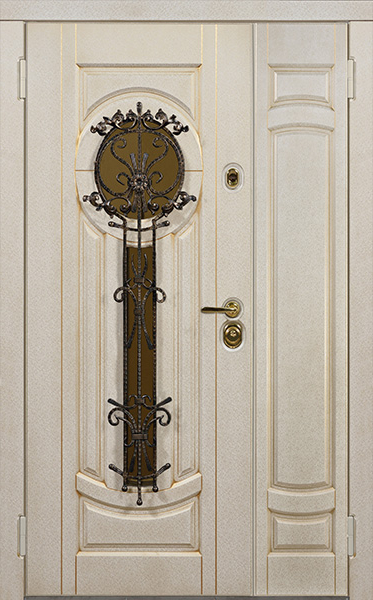 Двухстворчатая парадная дверь с ковкой и стеклом белая №30 — это сочетание красоты и надёжности. Конструкция из профильной трубы 50х25 мм и металлического листа толщиной 2 мм обеспечивает долговечность и стойкость к внешним воздействиям. Элементы ковки придают двери изысканный вид, а стеклопакет позволяет создать атмосферу лёгкости и прозрачности. Внешняя и внутренняя отделка выполнены из плиты МДФ, что делает дверь не только привлекательной, но и устойчивой к механическим повреждениям. Для дополнительной герметичности используются уплотнители с двумя контурами, а блокираторы обеспечат безопасность. Вариативность размеров и возможность добавления дополнительных опций, таких как шумо- и теплоизоляция, делают эту модель универсальной для установки в любом интерьере. Двухстворчатая парадная дверь с ковкой и стеклом белая №30 от производителя: быстрое изготовление и монтаж в Обнинске, индивидуальные размеры, широкий выбор материалов и фурнитуры, официальная гарантия до 10 лет.