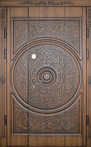 Входная металлическая дверь с порошковым покрытием стеклом и ковкой в частный дом №27