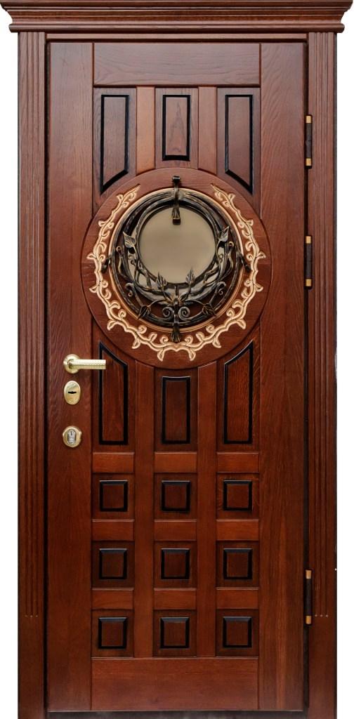 Красивая шпонированная дверь с надежной фурнитурой и ковкой "лоза" №33