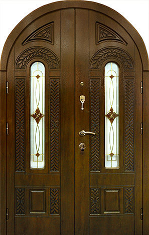 Арочный проём всегда смотрится благородно и подчёркивает архитектурный стиль дома, а витраж вносит в фасад лёгкость и игру света. Арочная входная дверь с витражом в частный дом №69 сочетает прочную металлическую основу с отделкой панелями из натурального дерева, которые сохраняют свою красоту долгие годы и стойко переносят ежедневную эксплуатацию. В конструкции предусмотрен лист стали толщиной 2 мм и система ребер жёсткости, что обеспечивает высокий уровень безопасности и долговечности. Терморазрыв в коробке и полотне защищает от промерзания и появления конденсата, сохраняя тепло в доме даже в сильные морозы. Итальянские замки Cisa цилиндрового и сувальдного типа дополняют защиту, гарантируя надёжность при ежедневном использовании. Возможность индивидуальной отделки, добавления зеркала, кованых элементов или стеклопакета делает эту модель не только функциональной, но и выразительной деталью экстерьера. Арочная входная дверь с витражом в частный дом №69 от производителя: быстрое изготовление и монтаж в Обнинске, индивидуальные размеры, широкий выбор материалов и фурнитуры, официальная гарантия до 10 лет.