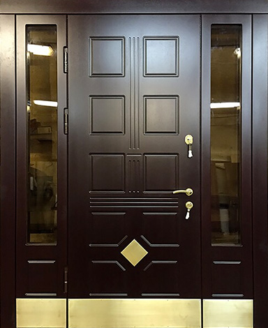 Натуральное дерево в отделке придаёт конструкции основательность и благородный внешний вид, а металлический каркас с листом стали толщиной 2 мм и системой ребер жёсткости обеспечивает надёжную защиту и долговечность. Входная дверь с остеклением №70 особенно востребована в частных домах и коттеджах, где важна не только безопасность, но и эстетика. Стеклянные элементы делают полотно визуально легче и наполняют прихожую естественным светом, при этом оставаясь частью прочной конструкции. Для комфорта предусмотрены два контура уплотнения, а терморазрыв в коробке и полотне защищает от промерзания и сохраняет тепло даже в сильные морозы. Итальянские замки Cisa цилиндрового и сувальдного типа дополняют высокий уровень безопасности. Возможность добавить кованые элементы, зеркало или стеклопакет позволяет адаптировать модель под архитектуру дома, подчёркивая индивидуальность и вкус владельцев. Входная дверь с остеклением №70 от производителя: быстрое изготовление и монтаж в Обнинске, индивидуальные размеры, широкий выбор материалов и фурнитуры, официальная гарантия до 10 лет.