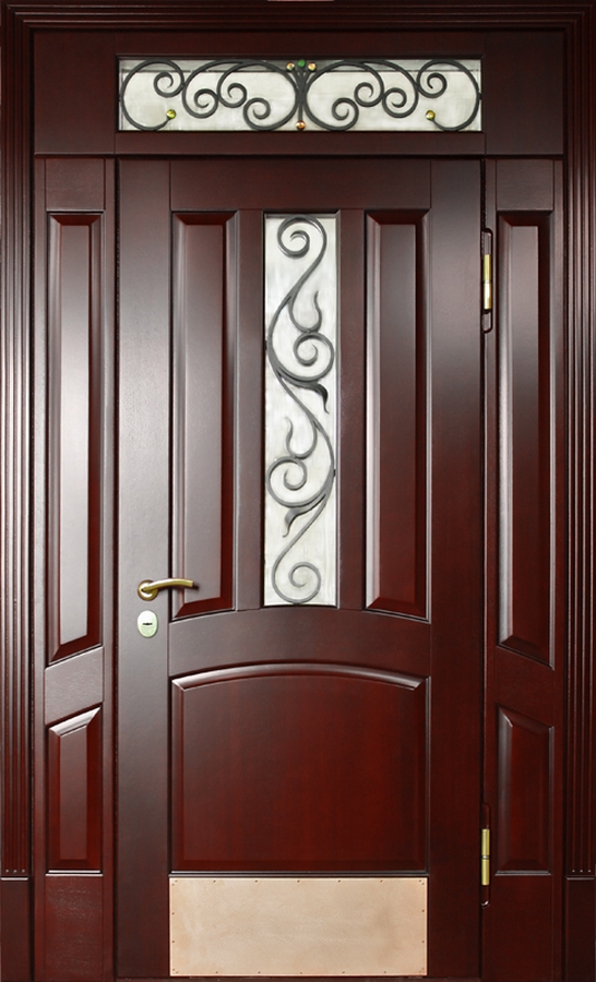Красивая шпонированная дверь с надежной фурнитурой и ковкой "лоза" №33 идеально дополнит интерьер вашего частного дома или коттеджа. Внешняя и внутренняя отделка выполнены из натурального дерева, что придает двери элегантность и стиль. Профильная труба 50х25 мм используется для каркаса и полотна, а лист металла толщиной 2 мм и ребра жесткости из профильных труб 40х25 мм обеспечивают прочность и долговечность. Несмотря на отсутствие терморазрыва, дверь гарантирует надежную защиту и теплоизоляцию благодаря двум контурам уплотнения. Элементы ковки "лоза" придают двери особое очарование, сочетая практичность с эстетикой. Эта дверь — идеальный выбор для тех, кто ценит стиль, качество и безопасность. Красивая шпонированная дверь с надежной фурнитурой и ковкой "лоза" №33 от производителя: быстрое изготовление и монтаж в Обнинске, индивидуальные размеры, широкий выбор материалов и фурнитуры, официальная гарантия до 10 лет.