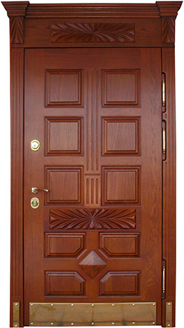 Эксклюзивная высокая входная дверь с железным отбойником №36 — это образец элегантности и функциональности, который идеально впишется в любой частный дом или коттедж. Изготовленная из массива дерева, она будет долго сохранять свой привлекательный внешний вид и устойчивость к внешним воздействиям. Прочная конструкция из профильных труб и листа металла толщиной 2 мм, усиленная ребрами жесткости, гарантирует надежность и долговечность. Терморазрыв в коробке и полотне помогает минимизировать теплопотери и защищает от перепадов температуры. Дверь оснащена высококачественными замками, что обеспечивает высокий уровень безопасности. Железный отбойник добавляет двери не только дополнительную защиту, но и стильный элемент дизайна. Эксклюзивная высокая входная дверь с железным отбойником №36 от производителя: быстрое изготовление и монтаж в Обнинске, индивидуальные размеры, широкий выбор материалов и фурнитуры, официальная гарантия до 10 лет.